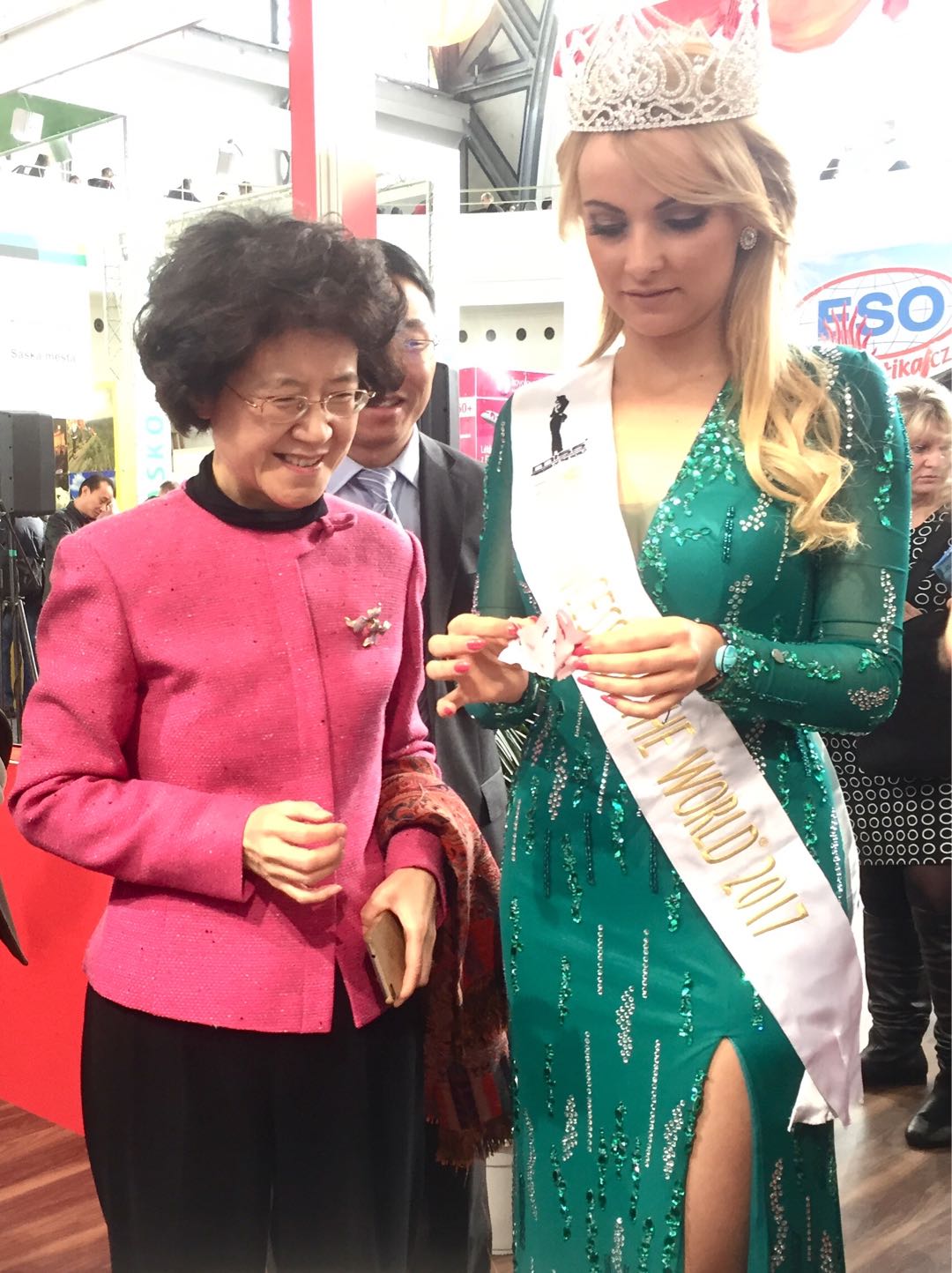當?shù)貢r間2月15日,在捷克首都布拉格展覽中心,愛濤文化集團“歡樂春節(jié)·精彩江蘇”文化藝術(shù)展演團為第27屆捷克“假日世界”國際旅游交易會助力展演。駐捷大使馬克卿女士、捷克地方發(fā)展部部長多斯塔洛娃女士、江蘇省文化廳副廳長劉愛華、江蘇省文化廳對外交流處副處長周云鳳蒞臨中國展位,愛濤文化集團總經(jīng)理陳云梅向來賓介紹了愛濤文化集團“歡樂春節(jié)·精彩江蘇”文化藝術(shù)展演團為本次旅游交易會精心準備的展演節(jié)目。