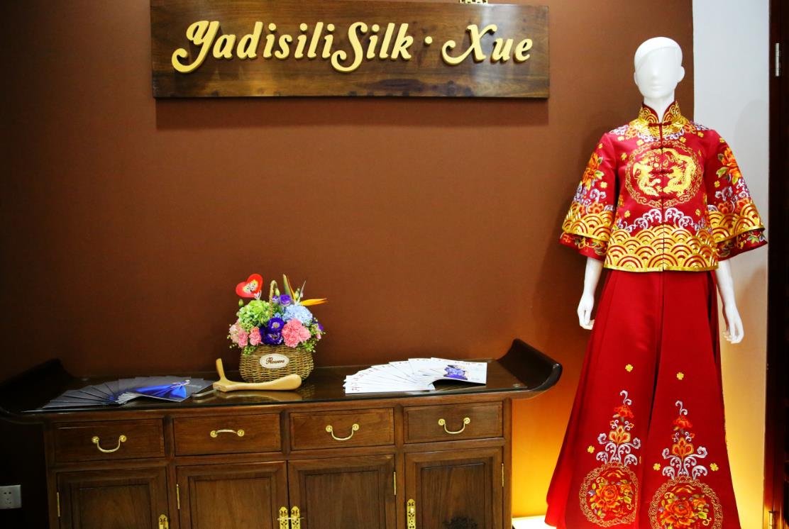 “YADISILISILK·XUE”為蘇州市歐星絲綢紡織有限公司旗下高定品牌,金雞湖店陳列了中式嫁衣、禮服、婚紗等高級定制華服和成衣系列,當(dāng)中融入了非常多的傳統(tǒng)文化,包括蘇繡、盤金繡、手繪等。今后在這里,客戶可以體驗到純粹的手工制衣,享受量體裁衣的專屬性。
