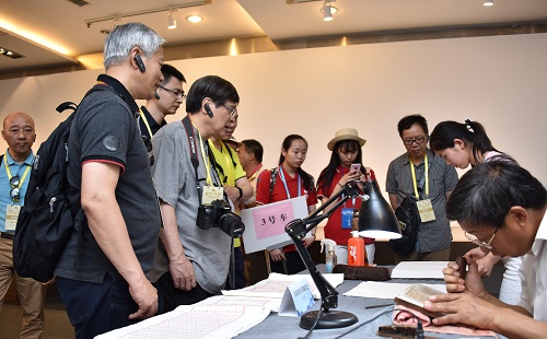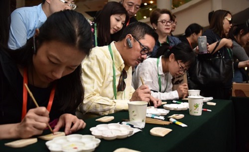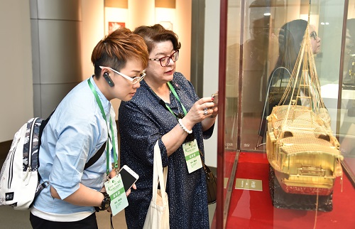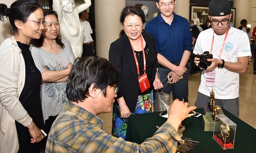 5月18日下午,作為“藝海流金·精彩江蘇”活動的一個重要組成部分,“藝海流金——吳楚風(fēng)韻江蘇省非物質(zhì)文化遺產(chǎn)精品展”在愛濤藝術(shù)中心隆重舉辦。中央政府駐香港聯(lián)絡(luò)辦宣傳文體部部長朱文率領(lǐng)的香港訪團(tuán)、澳門基金會行政委員會主席吳志良率領(lǐng)的澳門訪團(tuán)等一行上百人在江蘇省文化廳黨組成員、江蘇文化聯(lián)誼會副會長劉愛華的帶領(lǐng)下參觀此次展覽。愛濤文化集團(tuán)董事長張發(fā)松、常務(wù)副總經(jīng)理陳云梅接待訪團(tuán)。