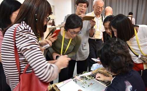 在非遺表演項(xiàng)目南京方山大鼓的歡騰聲中,港澳交流訪團(tuán)開啟了愛濤藝術(shù)中心的非遺文化之旅。吳楚風(fēng)韻江蘇省非物質(zhì)文化遺產(chǎn)精品展向訪團(tuán)展示了精巧雅致的核雕,工藝獨(dú)特的常州梳篦,秀麗、清雅的蘇繡,巧奪天工的南京金箔鍛制品,溫潤如玉的留青竹刻等國家級、省級的非物質(zhì)文化遺產(chǎn)項(xiàng)目,并參與體驗(yàn)了梳篦的制作和上色。這些杰出的非遺作品令港澳交流訪團(tuán)連連稱道,贊不絕口。