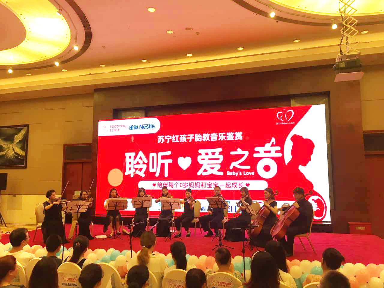 音樂(lè)會(huì)開(kāi)始之后,愛(ài)濤交響樂(lè)團(tuán)藝術(shù)家們完美演奏了《莫扎特小夜曲》、《巴赫小步舞曲》、《幽默曲》、《相思河畔》等眾多世界名曲,在胎寶寶與爸爸媽媽之間,架起了一座心靈之橋,為準(zhǔn)爸媽們帶來(lái)的遠(yuǎn)不止視聽(tīng)上的享受,更啟發(fā)了準(zhǔn)爸媽們的胎教意識(shí)。現(xiàn)場(chǎng)聆聽(tīng)高雅的交響樂(lè),對(duì)寶寶的智力開(kāi)發(fā)、動(dòng)作協(xié)調(diào)等方面的培養(yǎng),有很大的益處,讓胎寶寶在舒緩美妙的樂(lè)聲中,感知音樂(lè)之愛(ài),父母之愛(ài)。