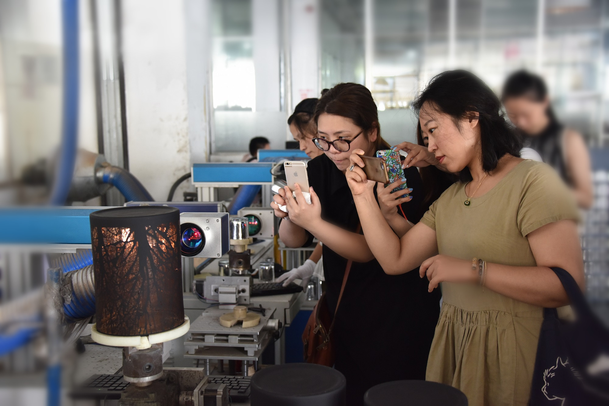 在創(chuàng)意設(shè)計研發(fā)中心的劉總帶領(lǐng)下,學(xué)員們參觀晶彩玻璃的生產(chǎn)過程